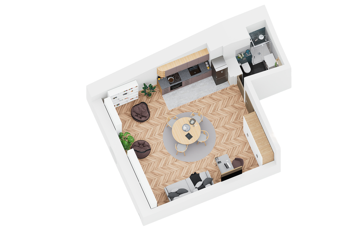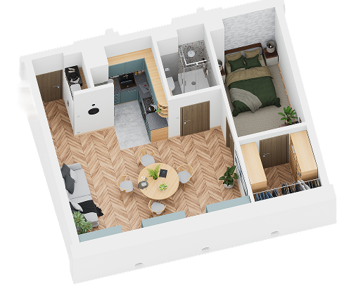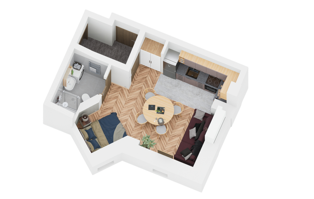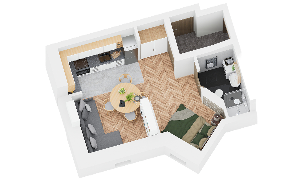 Każdy lokal to gotowy produkt „pod klucz” – wykończony, umeblowany i wyposażony we wszystko, co potrzebne, by od razu zamieszkać lub wynająć.