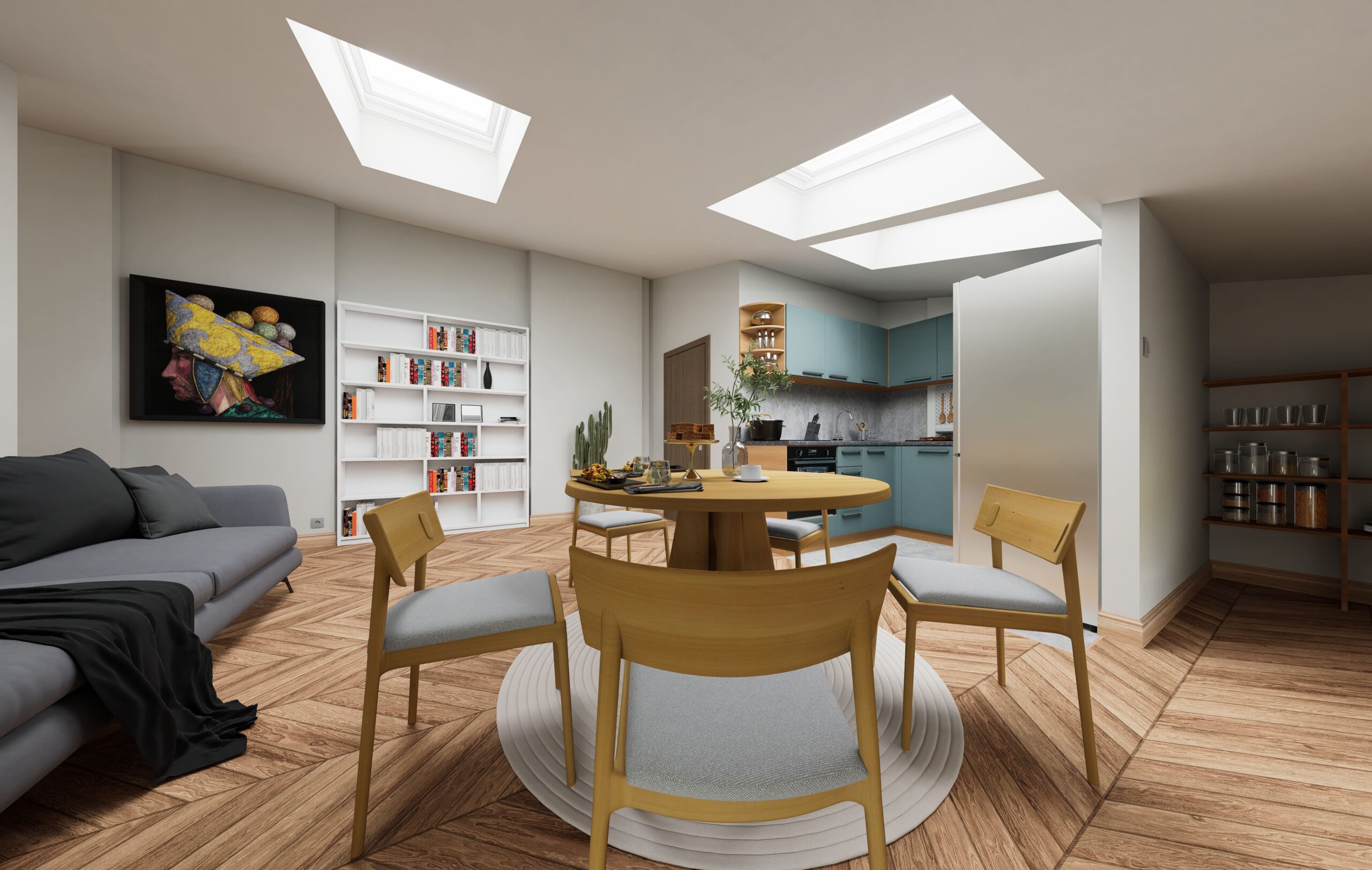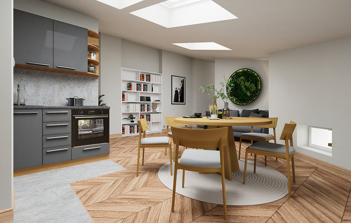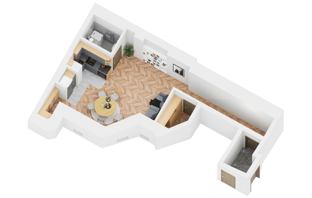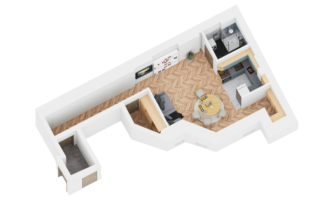 Na czwartej kondygnacji (piątym poziomie) kamienicy powstało 5 funkcjonalnych lokali mieszkalnych, o powierzchniach od 33,44 m² do 46,77 m². Każdy z nich został zaprojektowany tak, aby zapewnić maksymalny komfort, optymalne doświetlenie i efektywne wykorzystanie przestrzeni – zarówno dla osób prywatnych, jak i inwestorów szukających gotowego produktu pod wynajem.